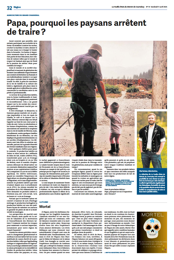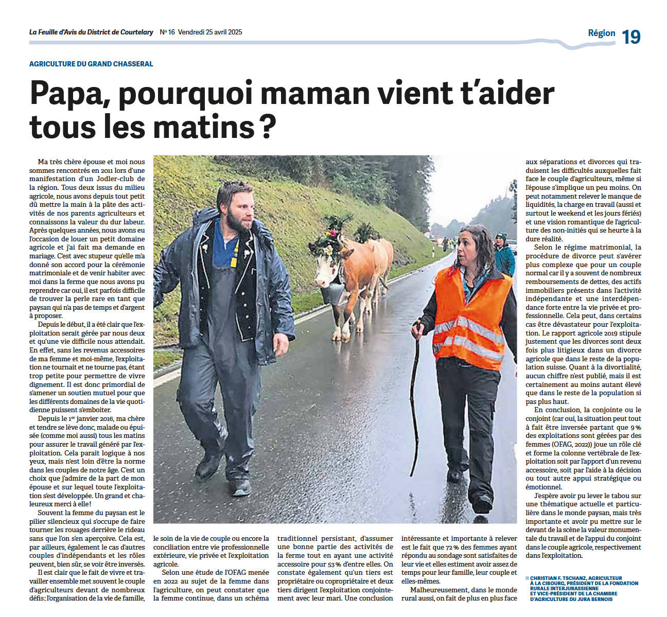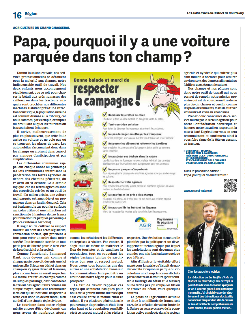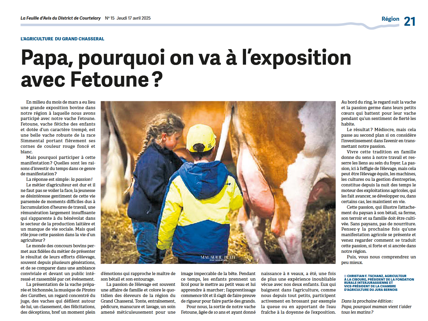 CHRISTIAN TSCHANZ chroniques Une fois par mois, je prend la plume pour exposer des thématiques en lien avec le monde paysan. À lire dans la Feuille d’avis du district de Courtelary.