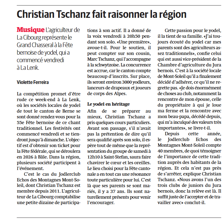 CHRISTIAN TSCHANZ Presse L’intelligence artificielle fera peut-être des calculs, mais elle ne saura jamais sentir l’odeur de la terre après la pluie. Le bilinguisme est notre plus beau terroir culturel: il se sème dans les écoles, les familles et les coeurs. La subsidiarité, c’est le bon sens mis en système : faire au plus près ce qu’on peut faire soi-même.